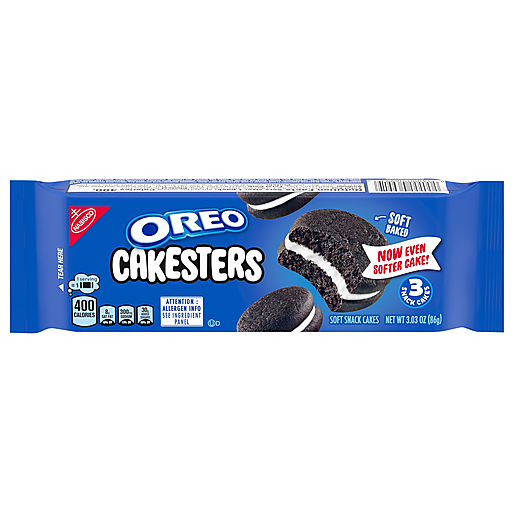 OREO Cakesters Soft Snack Cakes are a delicious, soft-baked twist on a classic sweet treat. These OREO snack cakes sandwich creme filling between two chocolate cakes, making them tasty sweet snacks for all ages. Each snack pack of OREO Cakesters includes 3 soft snack cakes making them ideal for packing into adult lunches, serving as birthday treats, office snacks or after school snacks for kids and adults. These convenient snacks make a great addition to your grab-and-go snack treats. OREO Cakesters--the delicious twist on America’s Favorite OREO chocolate sandwich cookie taste!